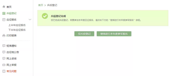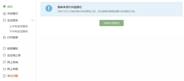 登录系统以后,点击“开始兵役登记”进行兵役登记哦!