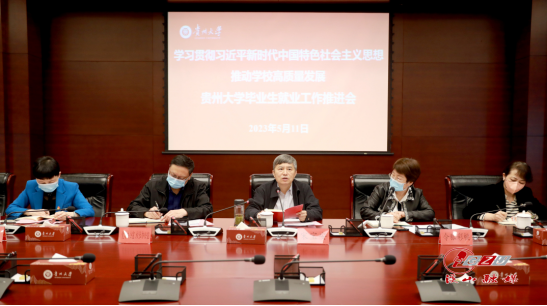 5月11日下午,贵州大学2023届毕业生就业创业工作推进会在贵州大学西校区召开。贵州大学校长宋宝安院士出席会议并讲话。会议传达了教育部 2023 届全国普通高校毕业生就业创业工作相关会议及指示精神,通报了贵州大学2023届毕业生当前去向落实情况。贵州大学党委副书记令狐彩桃主持会议。