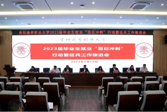 5月19日,贵阳康养职业大学在学校新综合楼会议室召开2023届毕业生就业“百日冲刺”行动暨征兵工作推进会。学校党委书记冉江舟、学校党委副书记、院长杨静出席会议并讲话,学院党委班子成员出席会议,会议由党委委员、副院长杨虹主持。