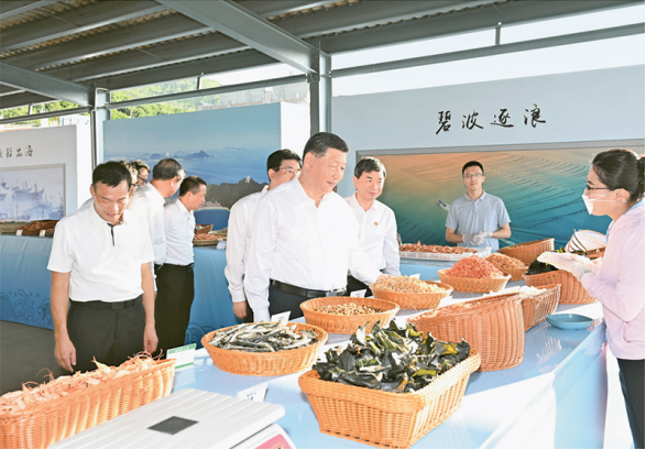 2024年10月15日至16日,中共中央总书记、国家主席、中央军委主席习近平在福建考察。这是15日下午,习近平在漳州市东山县陈城镇澳角村考察时,了解海鲜干货和渔获产品交易情况。 新华社记者 谢环驰/摄