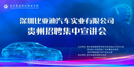 9月28日下午,深圳比亚迪汽车实业有限公司贵州招聘宣讲会在贵州装备制造职业学院举行。