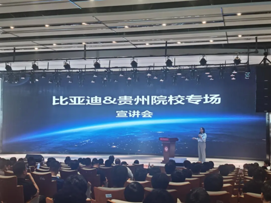 比亚迪集团人力资源处深圳区域总监强雁蕾系统介绍了企业的发展历程、产业布局及企业文化,并重点解读岗位需求、薪酬福利及职业发展路径,明确比亚迪集团将为贵州学子提供技术、管理等4000余个就业岗位,助力贵州青年实现人生价值。
